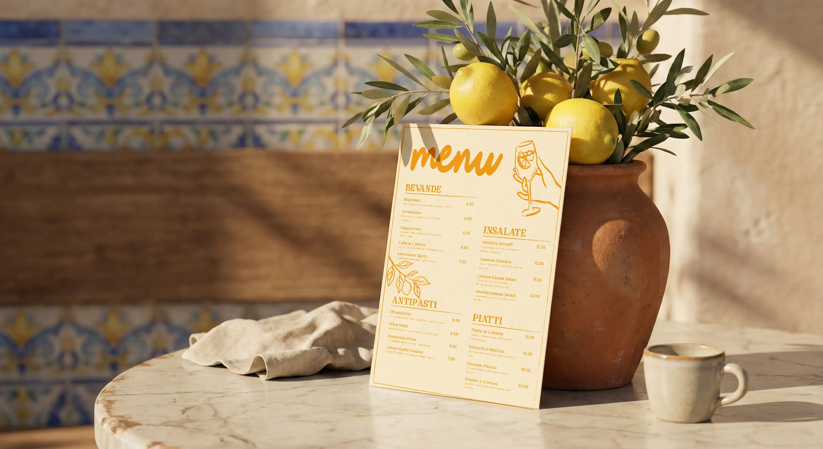 The challenge was to design a menu and visual content that feels modern while keeping a warm, Italian-inspired atmosphere. The design needed to be clear, readable, and visually appealing, while communicating freshness, comfort, and a relaxed café vibe.